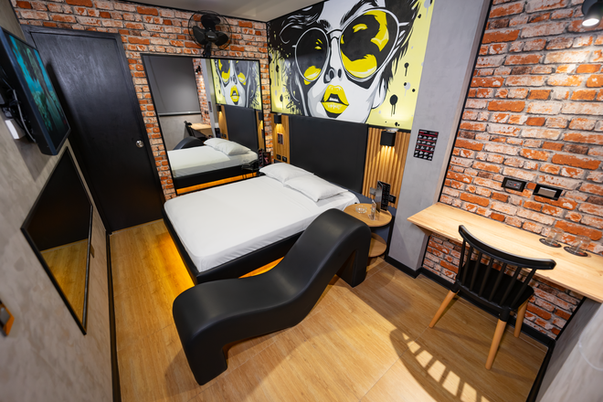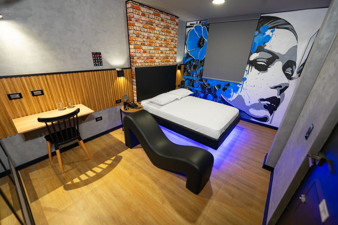 Smart Tv 43" - Netflix - Cable - Ducha española: fria y caliente - Mesa de trabajo - Sofá Kamasutra - Ventilador - WiFi - Room serviso 24 hrs. - Estacionamiento privado.
